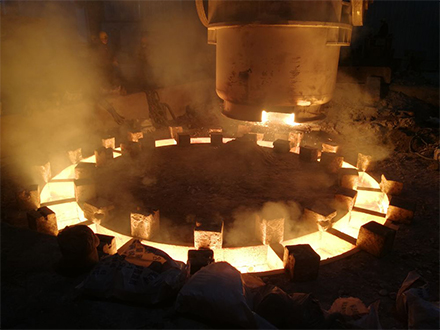 騰飛鑄鋼擁有2個大型鑄造基地,8個造型地坑,可生產(chǎn)單件重量150噸鑄鋼件,采用水玻璃砂造型工藝,目前擁有25噸、30噸、50噸煉鋼電爐4臺、120噸精煉爐1臺;150噸大型拋丸機(jī)1臺,4臺大型天燃?xì)鉄崽幚頎t,30臺起重設(shè)備,起吊200噸。精良的設(shè)備,為優(yōu)質(zhì)的鑄鋼件的生產(chǎn)提供了保障。