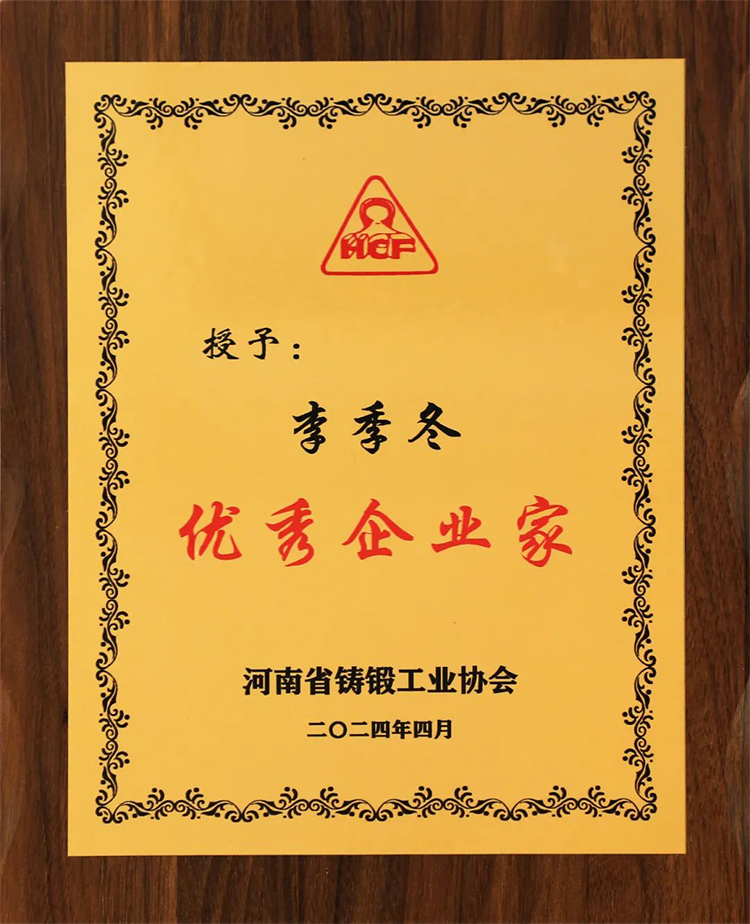 ? ? ?在2024年河南省鑄鍛工業(yè)年會上,公司被評為“河南省鑄鍛行業(yè)綠色鑄造示范企業(yè)”榮譽稱號,并被授予“鑄鍛行業(yè)優(yōu)-秀企業(yè)”。李總被授予“優(yōu)-秀企業(yè)家”稱號。